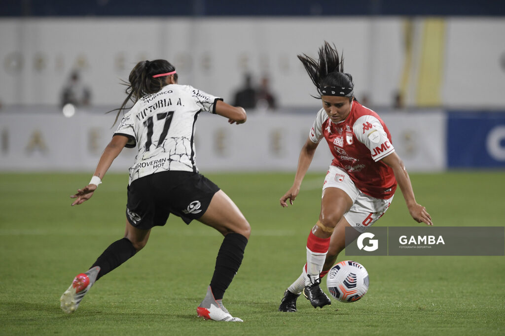 ©Sandro Pereyra-20211121SP_0715./ Nairelis Gutiérrez, de Independiente Santa Fé, Tamires, de Corinthians, en el Estadio Gran Parque Central, 21 de noviembre de 2021. / Foto: Sandro Pereyra, Gamba.-