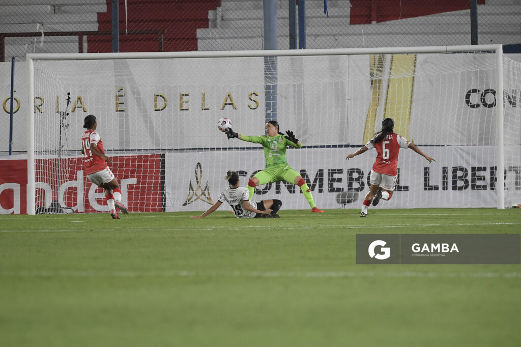 ©Sandro Pereyra-20211121SP_0398./ Kemelli, golera de Corinthians, Kena Romero, de Independiente Santa Fé, y Gi Campiolo, de Corinthians, en el Estadio Gran Parque Central, el 21 de noviembre de 2021. Foto: Sandro Pereyra, Gamba.-