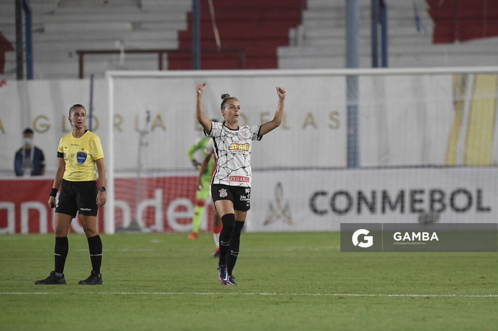 ©Sandro Pereyra-20211121SP_0359./ Adriana, de Corinthians, tras convertir ante Independiente Santa Fé, en el Estadio Gran Parque Central, el 21 de noviembre de 2021. / Foto: Sandro Pereyra, Gamba.-