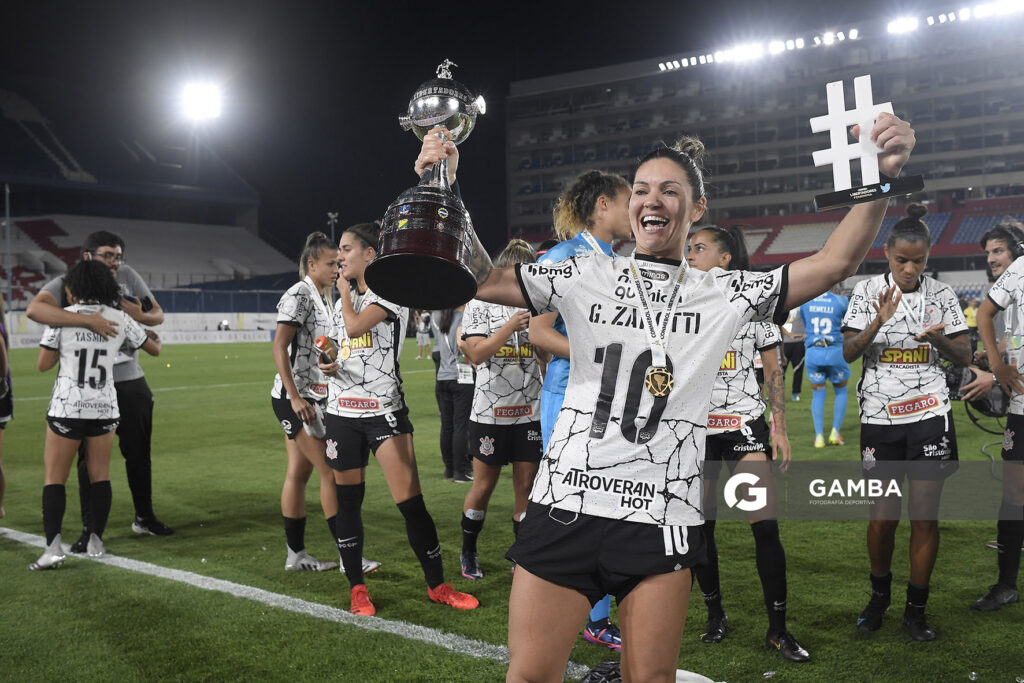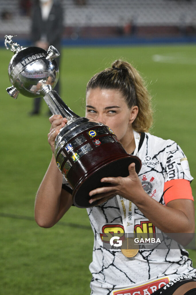 ©Sandro Pereyra-20211121SP_1160./ Gabi Zanotti, de Corinthians, tras coronarse Campeona de la Libertadores Femenina. Estadio Gran Parque Central, el 21 de noviembre de 2021. / Foto: Sandro Pereyra, Gamba.-
