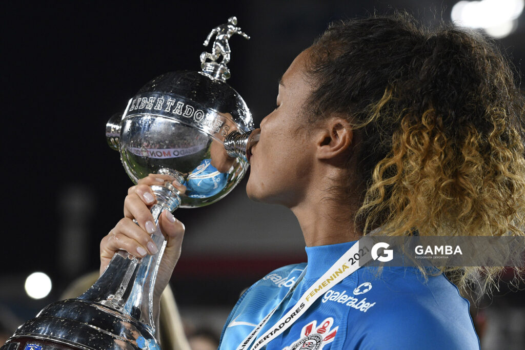 ©Sandro Pereyra-20211121SP_1232./ Ingryd, de Corinthians, tras coronarse Campeona de la Libertadores Femenina. Estadio Gran Parque Central, el 21 de noviembre de 2021. / Foto: Sandro Pereyra, Gamba.-