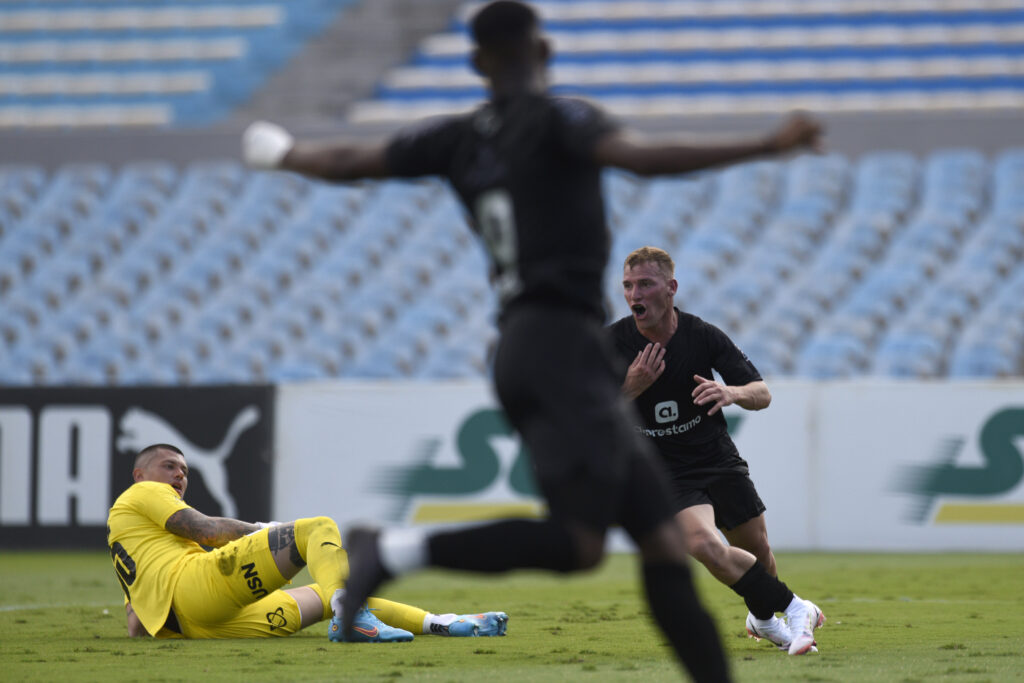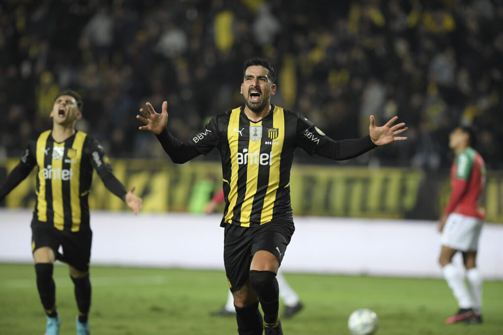©Sandro Pereyra-20220521SP_0761./ Lucas Viatri, de Peñarol, tras convertir a Boston River el 21 de mayo de 2022, en el Estadio Campeón del Siglo . / Foto: Sandro Pereyra, Agencia Gamba.-