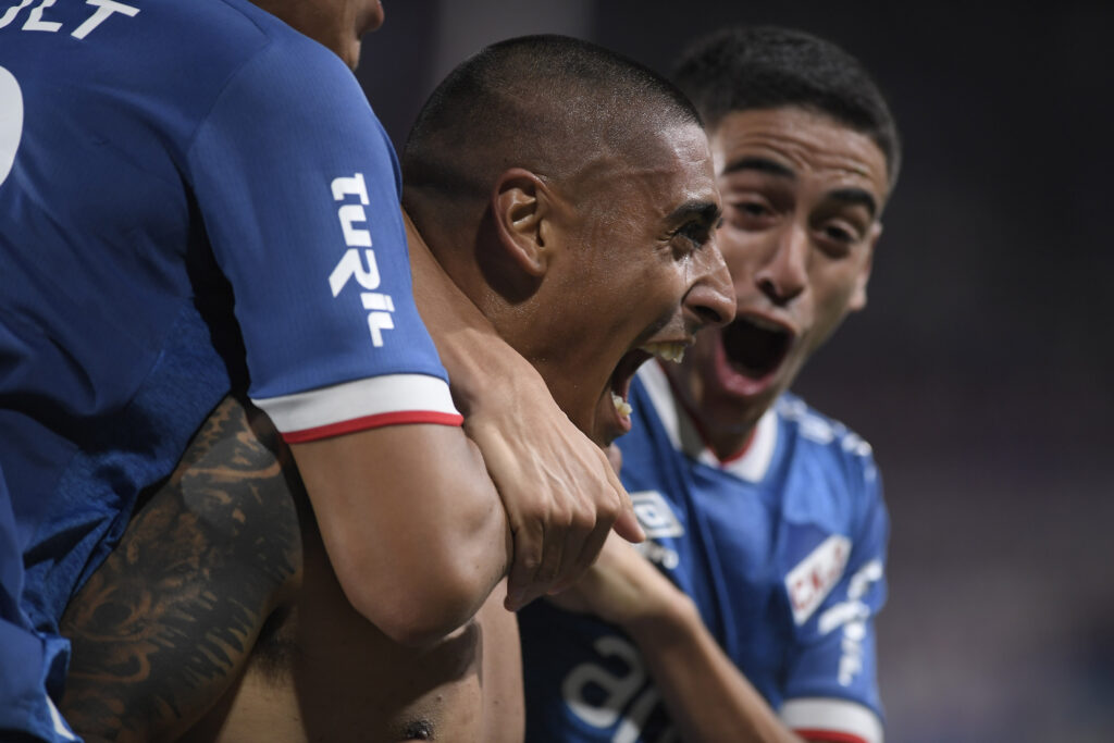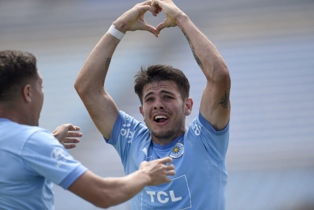 ©Fernando Morán-20220206FM-0395./ Emmanuel Gigliotti, de Nacional, tras convertir ante Deportivo Maldonado el 6 de febrero de 2022 en el Gran Parque Central. / Foto: Fernando Morán, Gamba.-