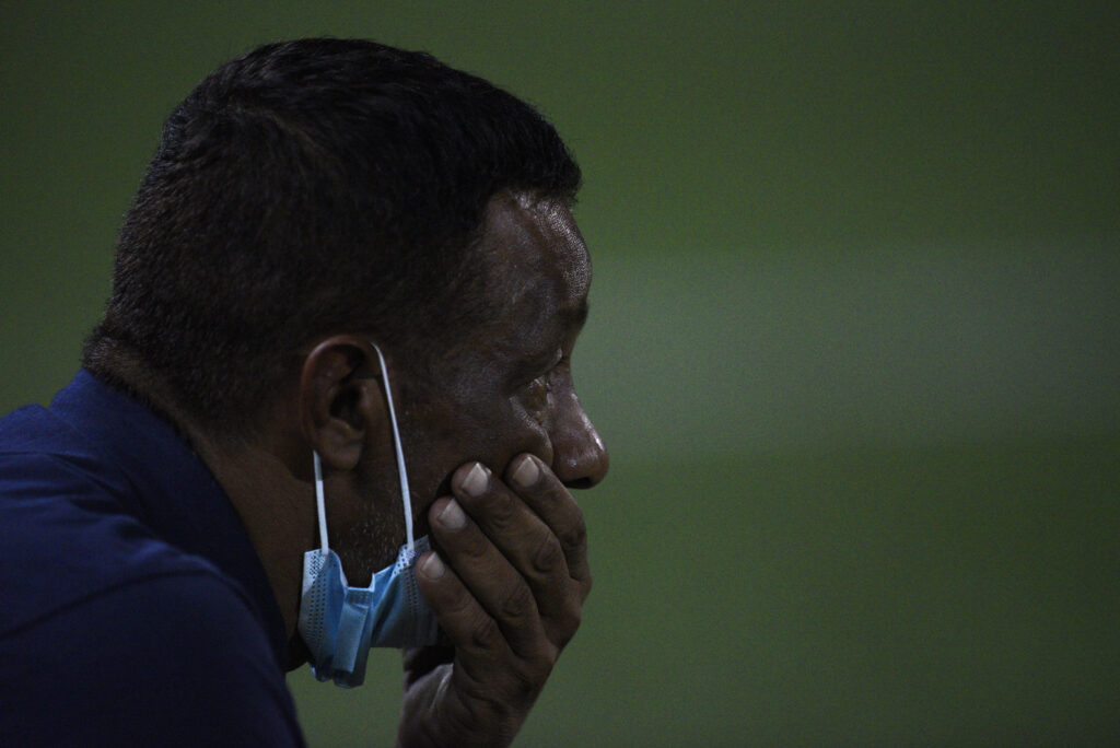 ©Fernando Morán-20220213FM-1141./ Héctor Rodríguez, director técnico de Defensor Sporting, el 13 de febrero de 2022 en el Estadio Campeón del Siglo. / Foto: Fernando Morán, Gamba.-