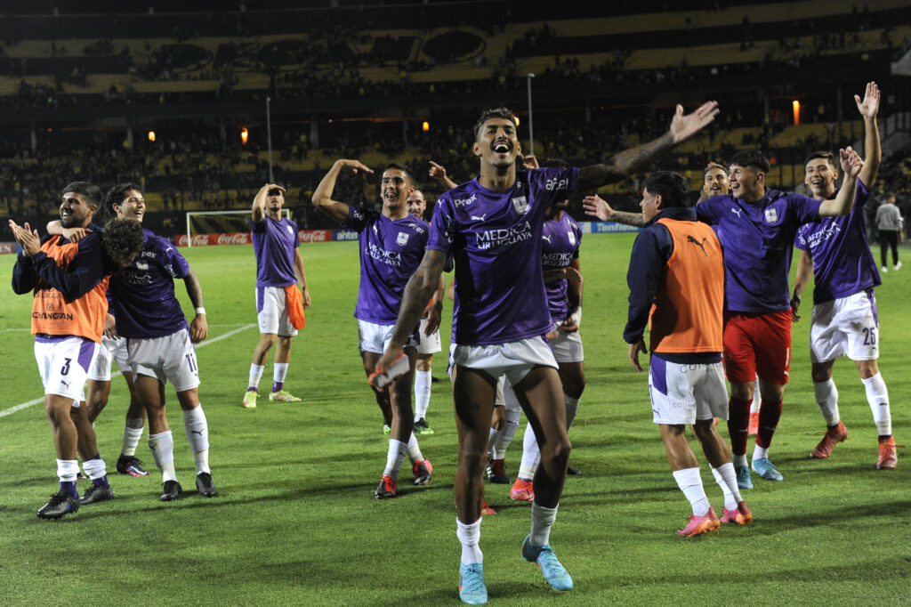 ©Fernando Morán-20220213FM-1787./ Jugadores de Defensor luego de vencer a Peñarol el 13 de febrero de 2022 en el Estadio Campeón del Siglo. / Foto: Fernando Morán, Gamba.-