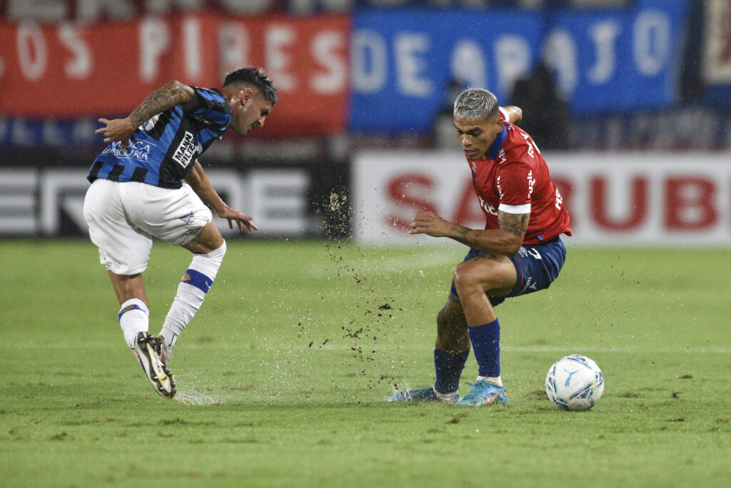 ©Fernando Morán-20220206FM-0561./ Santiago Ramírez, de Nacional, Maximiliano Cantera, de Deportivo Maldonado, el 6 de febrero de 2022 en el Gran Parque Central. / Foto: Fernando Morán, Gamba.-