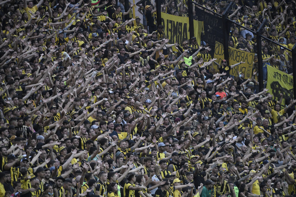 ©Sandro Pereyra-20220227SP_1547./ Hinchas de Peñarol en la tribuna José Pedro Damiani del Estadio Campeón del Siglo, el 27 de febrero de 2022. / Foto: Sandro Pereyra / GAMBA.-