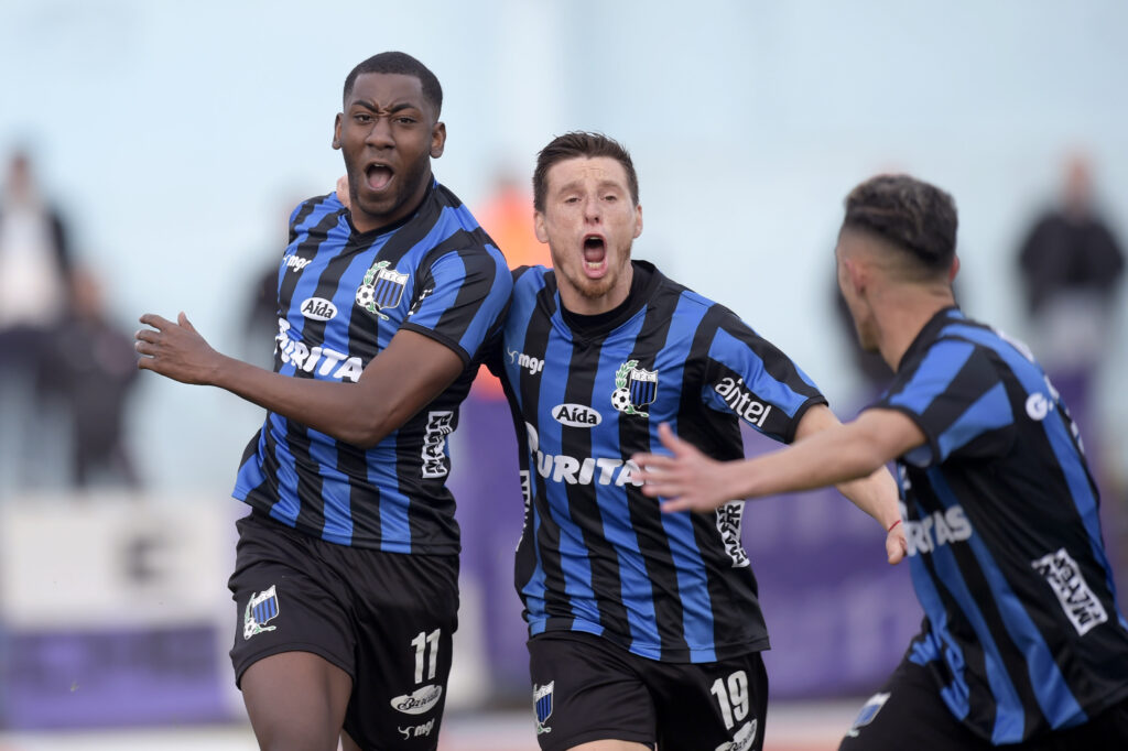 ©Fernando Morán-20220226FM-0342./ Maicol Cabrera, de Danubio, tras convertir a Liverpool el 26 de febrero de 2022, en el Estadio Belvedere. / Foto: Fernando Morán, Gamba.-